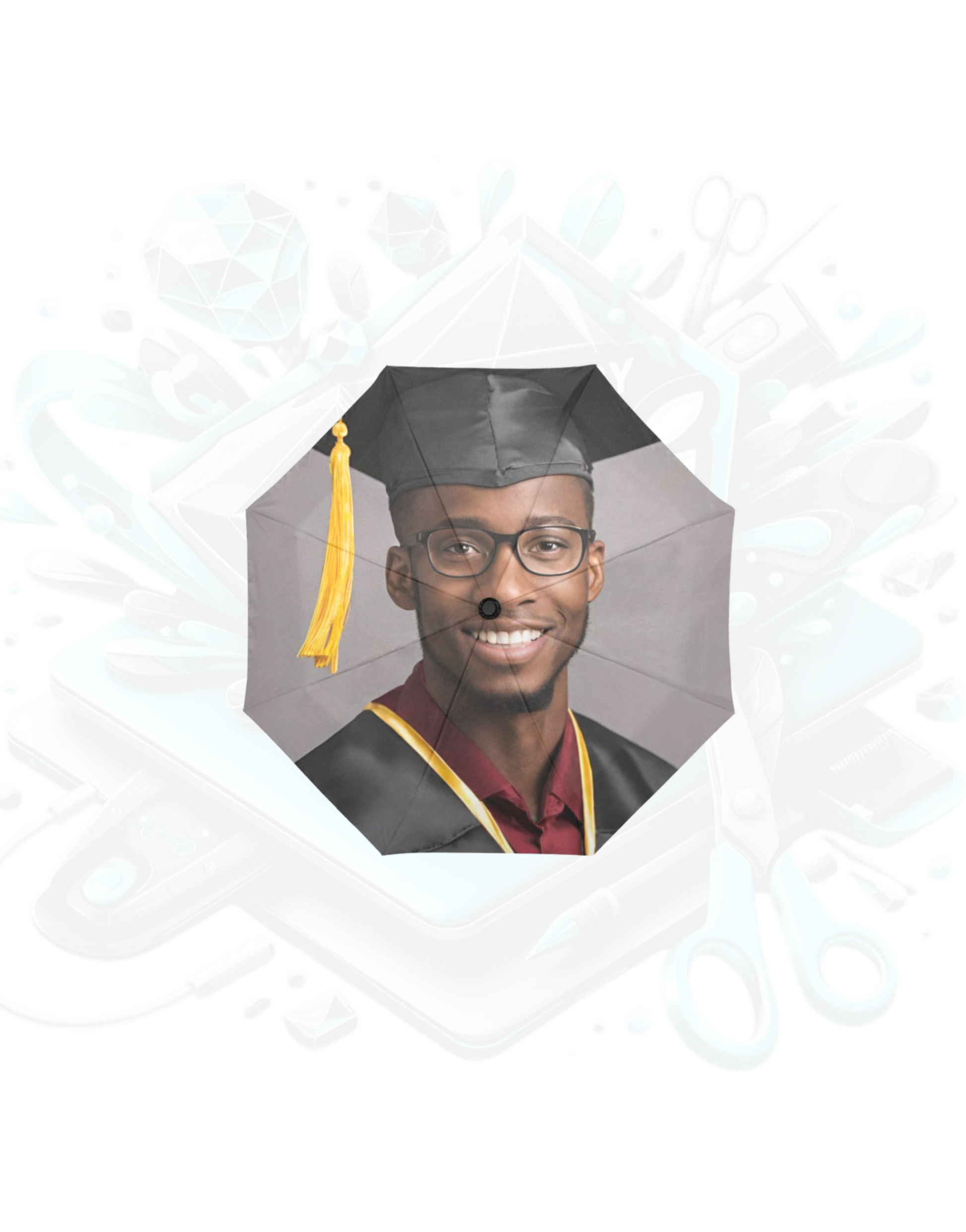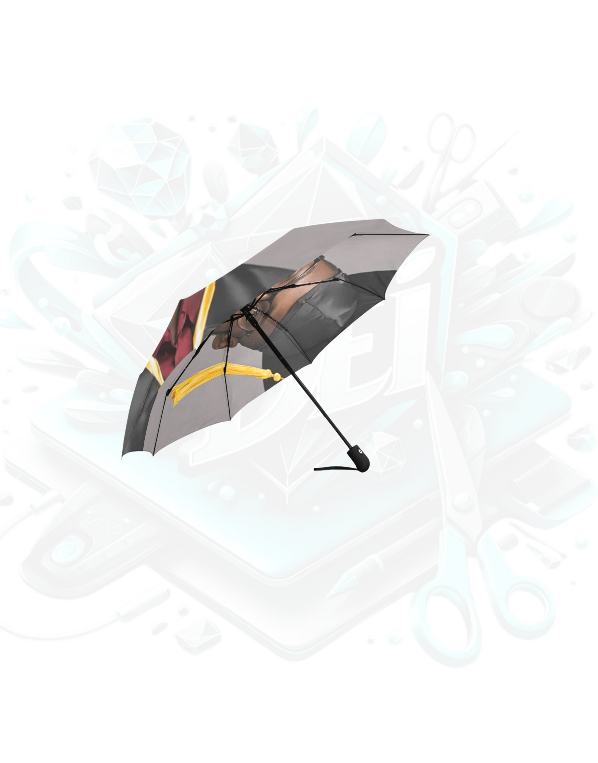 Made from 100% polyester waterproof fabric and strong fiber for extra support. Using heat sublimation technique to prevent discoloring, long-lasting effects. Auto open close system, can operate with one hand in one second. Umbrella Dimension: Closed Length 11.42 inches, Coverage Diameter: 37.4 inches.